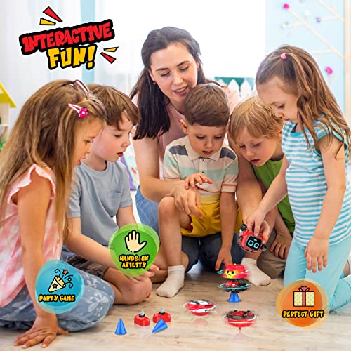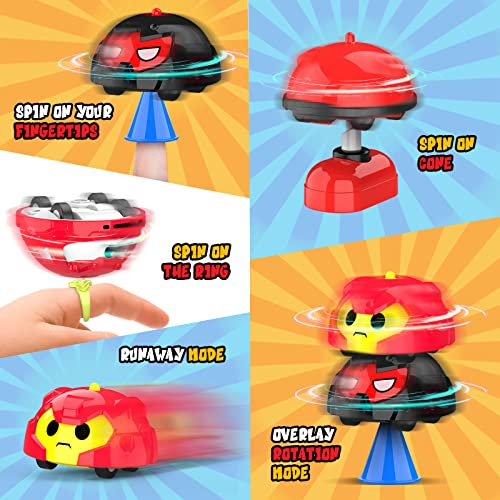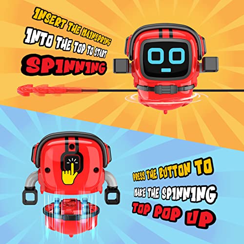 - ✔ 【Gyro Toy】 Da la vuelta al carro de juguete, puedes usar el mecanismo de relojería para girar la parte superior, luego presiona el botón en la parte posterior del robot para aterrizar tu barriga como una parte superior separada. Si tiene varios de estos robots, puede apilar tops o competir con sus amigos. Todo el juguete tiene una estructura firme y estable, resistencia al impacto y una larga vida útil.
