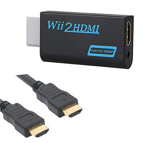 Thlevel Convertidor Wii a HDMI Adaptador Wii2HDMI 720P/1080P con Cable HDMI de 1,5m con Puerto HDMI y Jack 3.5mm – Soporta Wii U Wii Smart HDTV Monitor Proyector (Negro)