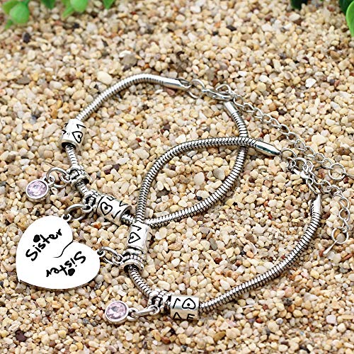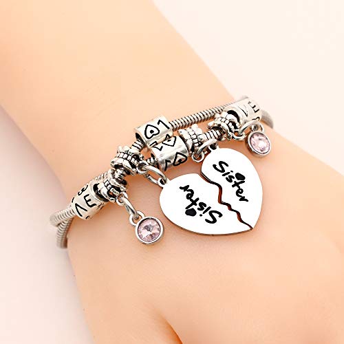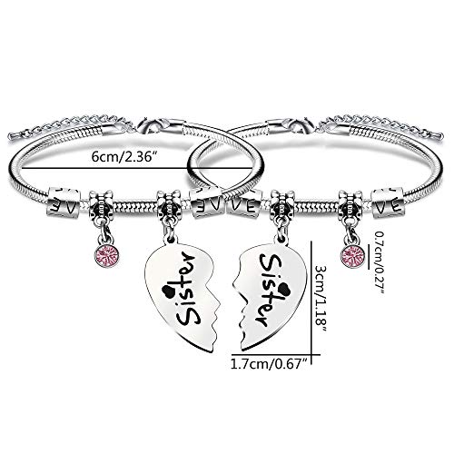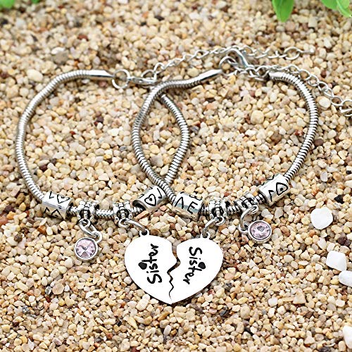 Juego de 2 pulseras de corazón roto para hermanas, con cristales, joyería para mujer, regalo para hermanas y amigas