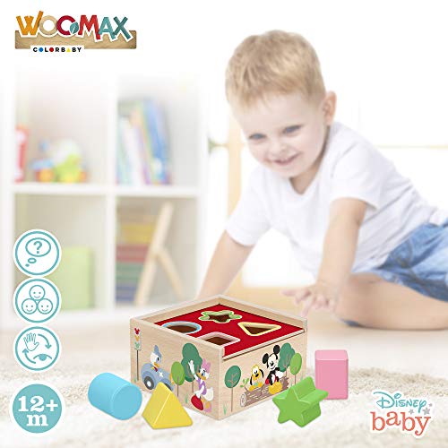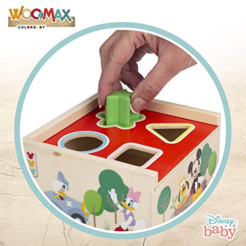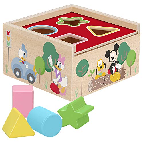 - Aprende jugando con Mickey, Minnie, Daisy, Donald y Pluto Sus personajes Disney favoritos alegran esta divertida caja en madera natural para encajar formas