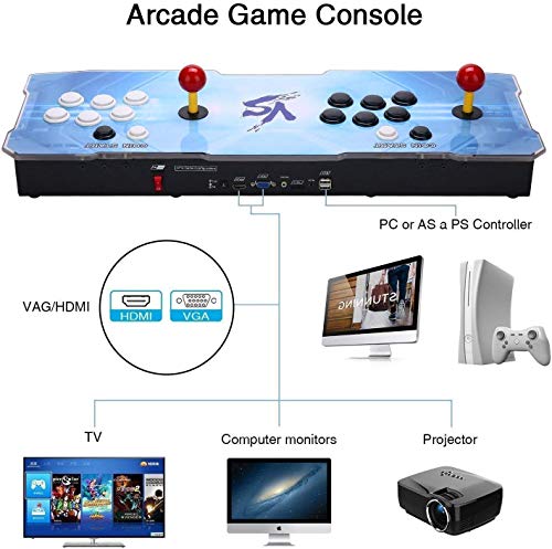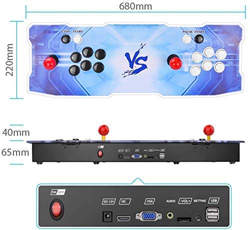 - ?️[SISTEMA DE ARCADA FAMILIAR]: Pandora's Box 9D utiliza un sistema de arcade familiar que fácilmente podría ofrecerte un mundo arcade propio. Es compatible con dos jugadores que disfrutan de los juegos al mismo tiempo, lo que podría brindar a los usuarios una experiencia arcade real. El joystick doble de 8 vías es perfecto para todos los juegos.