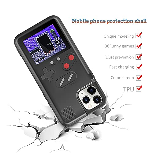 Gameboy - Funda para iPhone, Autbye Retro 3D para consola de juegos con 36 juegos clásicos, pantalla a color a prueba de golpes para iPhone (negro, para iPhone 13 Pro Max)