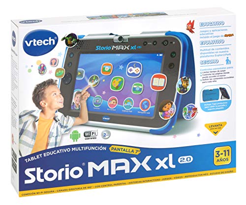 VTech - Storio Max XL 2.0, Tablet educativo multifunción 7", especialmente diseñado para niños, cámara 180º para fotos y selfies, vídeos, juegos, cine, historias, color azul, versión ESP (80-194622)