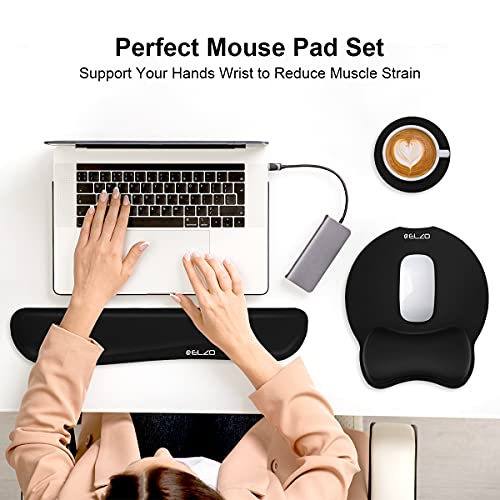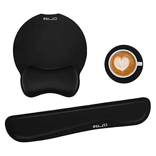 ELZO - Juego de soporte de reposamuñecas para teclado y alfombrilla de ratón con acolchado de espuma viscoelástica, base de goma antideslizante y diseño ergonómico para ordenador portátil