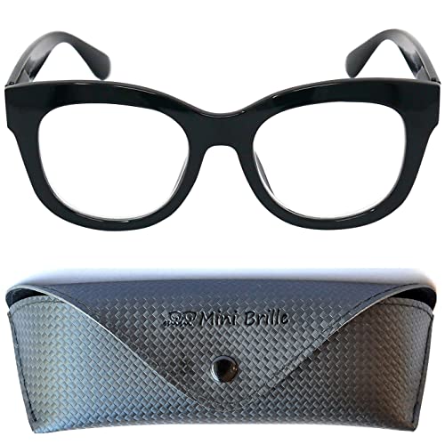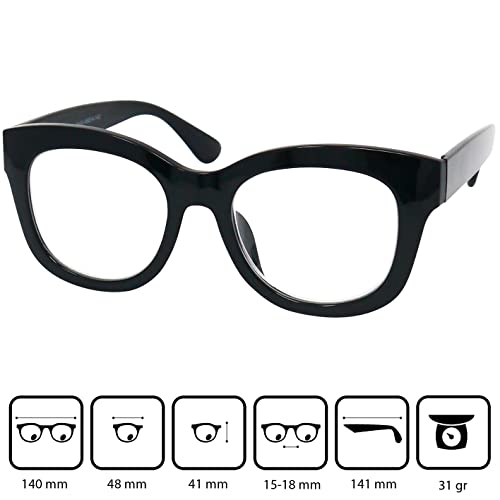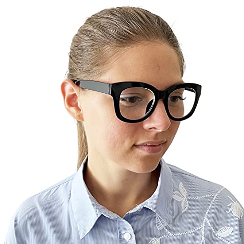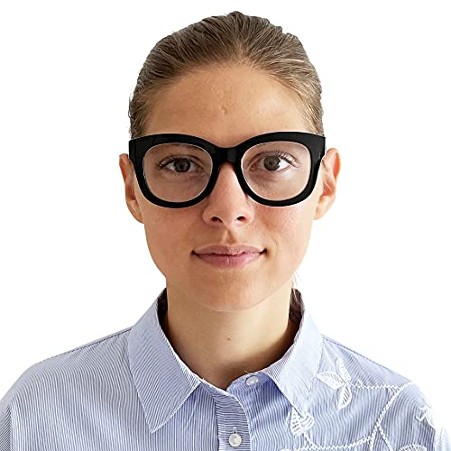 Gafas con Filtro de Luz Azul Retro con Grandes Lentes, Funda GRATIS, Montura Gruesa el Plástico (Negra), Gafas para Ordenador, Gafas de Lectura Mujer y Hombre +2.0 Dioptrías