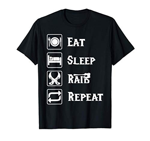 Eat Sleep Raid Repeat Gaming Wow RPG Camiseta