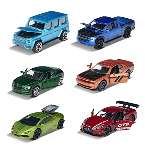 Majorette 212054024Q01 Limited Edition 7 – Juego de 6 Coches de Juguete de Metal Cromado Mate, con Rueda Libre y Piezas de Apertura, Incluye Tarjeta Coleccionable