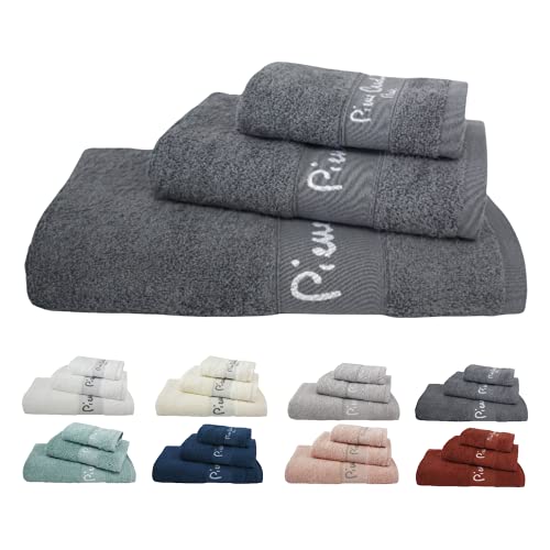 Pierre Cardin - Juego de 3 Toallas PC Logo - Tocador, Lavabo y Ducha - Gris Antracita