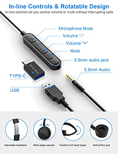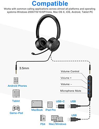 Auriculares Micrófono PC Auriculares Telefono USB/3.5mm Cancelación de Ruido & Sonido estéreo Claro Cascos Business para Skype Softphone Centros de Llamadas Cursos Online