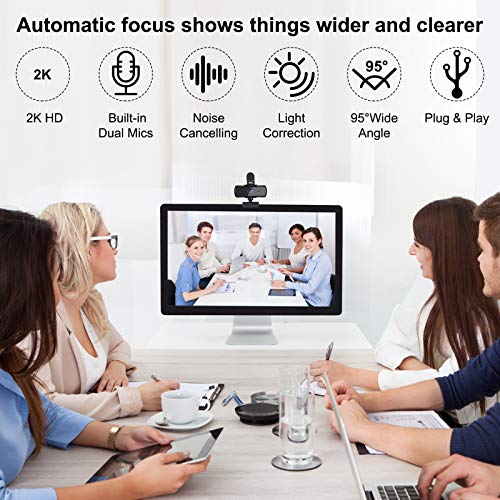 - 【Webcam Full HD 2K 1440P】 - La webcam 2K 1440P de alta definición cuenta con una resolución QHD de 2560 x 1440 que graba videos vívidos y de alta definición, brinda videos nítidos y nítidos a una velocidad fluida de 25 cuadros / seg. La cámara web con ajuste automático de brillo y enfoque automático muestra las cosas más amplias y claras.