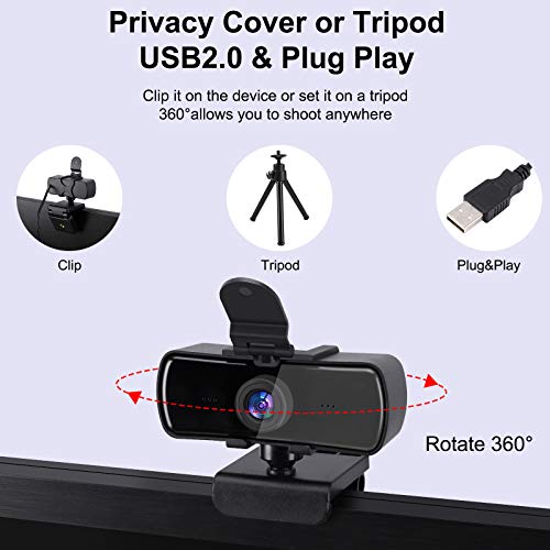 - 【Cámara web con cubierta de privacidad y trípode】: le ofrecemos una cubierta de privacidad y un soporte de trípode GRATIS. La cubierta de privacidad protegerá su privacidad y lentes. El trípode se puede ajustar en altura, puede usarlo en cualquier momento y en cualquier lugar.