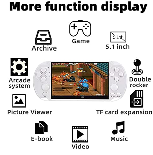 - Pantalla LCD de alta definición de 5.1 pulgadas, sistema arcade, juegos integrados, aunque no es la mejor consola de juegos, pero definitivamente te traerá felicidad, te permite recordar el clásico tiempo nostálgico.