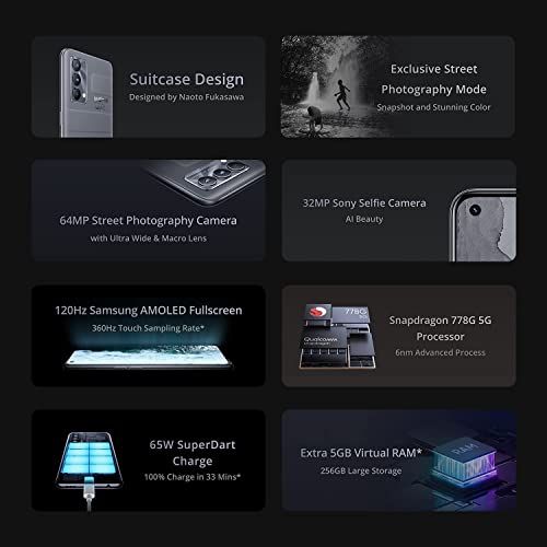 realme GT Master Edition Smartphone Libre, Procesador Qualcomm Snapdragon 778G 5G, Pantalla completa AMOLED Samsung de 120 Hz, Carga SuperDart de 65W, Cámara principal de 64MP, 6+128GB, Gris viajero