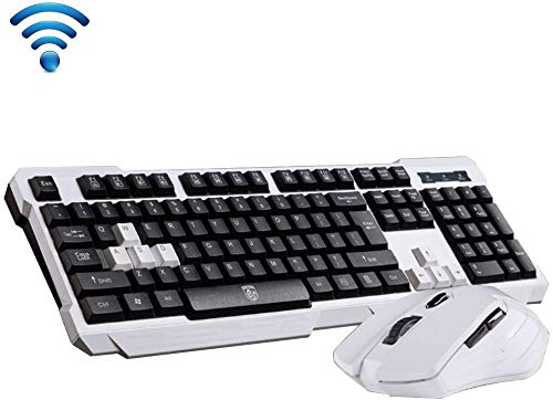 UrChoiceLtd® Delog V60 - Juego de teclado para videojuegos (teclado inalámbrico USB ergonómico y USB 2,4 GHz, 1000/1600 DPI, 6 botones, USB, inalámbrico), color negro y blanco