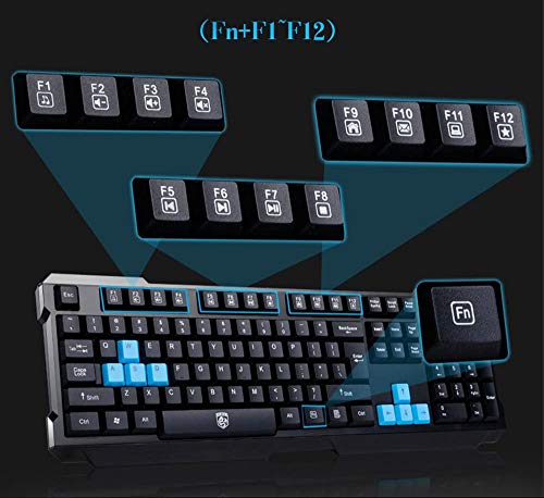 - Características del teclado. 104 teclas, 19 teclas sin conflicto, receptor inalámbrico de 10 m, diseño a prueba de salpicaduras, tapa de tallado láser, teclas multimendia, diez mil botones de vida, plug receptor and play.
