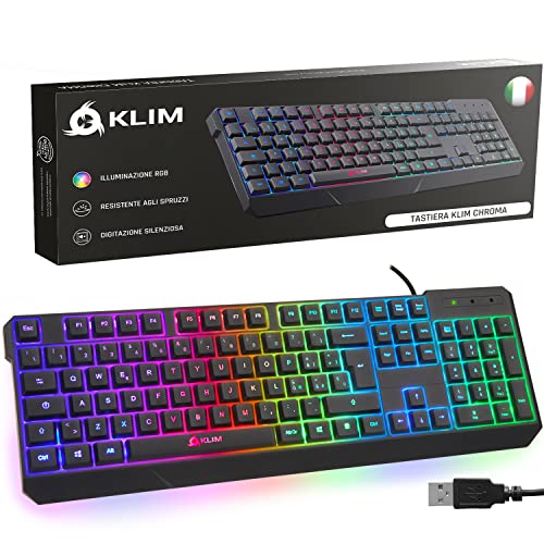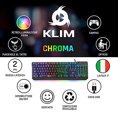 ⭐️KLIM Chroma Teclado Gaming en ITALIA USB – Alto Desempeño – Retroiluminación a Color Estilo Gaming – Teclado para Juegos PC PS4 Windows Mac - Nueva Versión