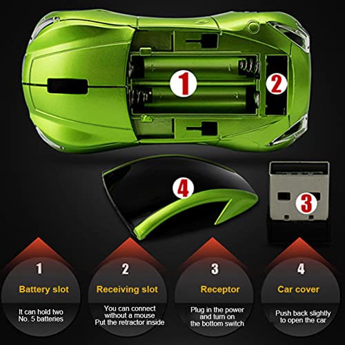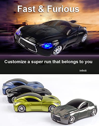 FENGCHUANG Ratón inalámbrico en forma de coche fresco de 2.4 GHz, ratón óptico ergonómico para juegos con receptor USB para PC con Windows Laptop