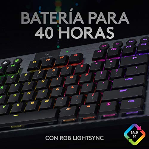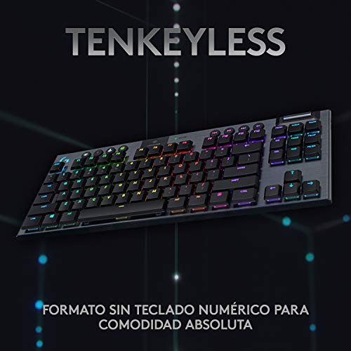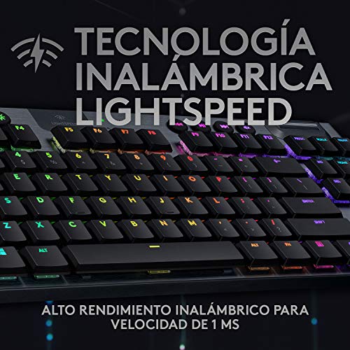 Logitech G915 LIGHTSPEED TKL Teclado Gaming Mecánico Inalámbrico con teclas GL-Táctil de bajo perfil, LIGHTSYNC RGB, Diseño ultra delgado, 40 Horas duración de Batería, Disposición QWERTY ES - Negro