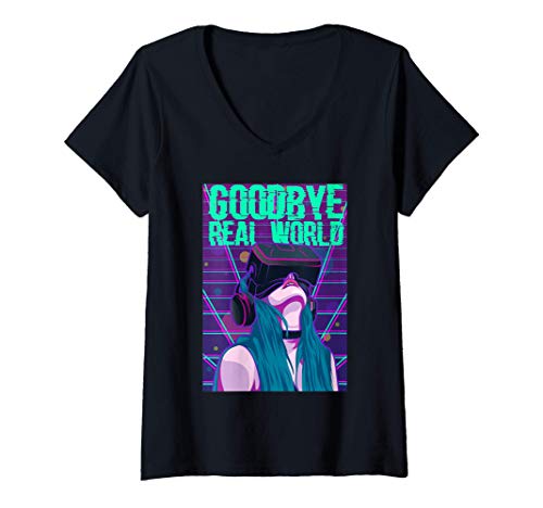Mujer Adiós al Mundo Real VR Juegos de Realidad Virtual Gamer Camiseta Cuello V
