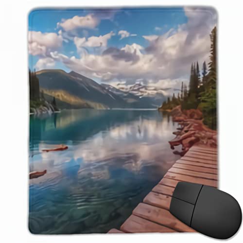 Pasarela de madera a lo largo de Clear Mountain Lake Evergreen Trees Mouse Pad Mat Computer PC Laptop Gaming Office Home Desk Accesorio Gadget