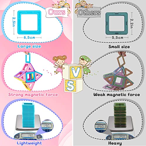 - Plástico ABS Seguro No Tóxico - El bloque magnético está hecho de material ABS no tóxico original de alta calidad, todos los chips de colores del arco iris están tratados por ultrasonidos para tener un mejor sellado y son perfectos para evitar roturas, Diseño de borde redondo sin nitidez, no se preocupe por lastimar las manitas de sus hijos, tenga la seguridad de que su hijo puede jugar Bloques Magnéticos.