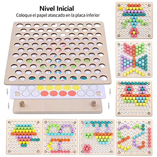 Fabu 136 Pcs Juego de Cuentas de Madera, Juguete Educativo Montessori, Creativo Juguete Educativo para Niños y Padres, Montessori Juego de Combinación de Colores