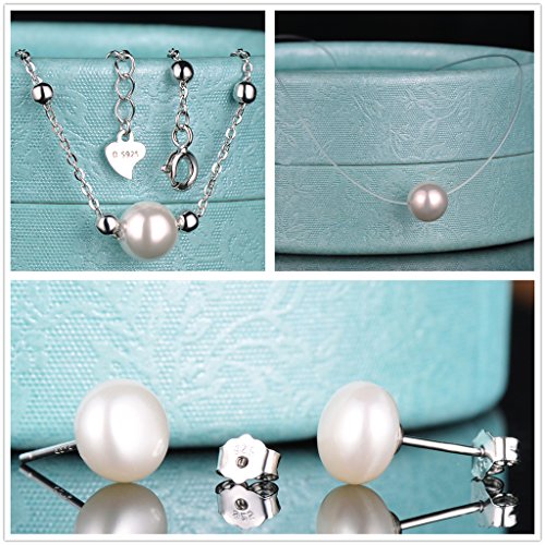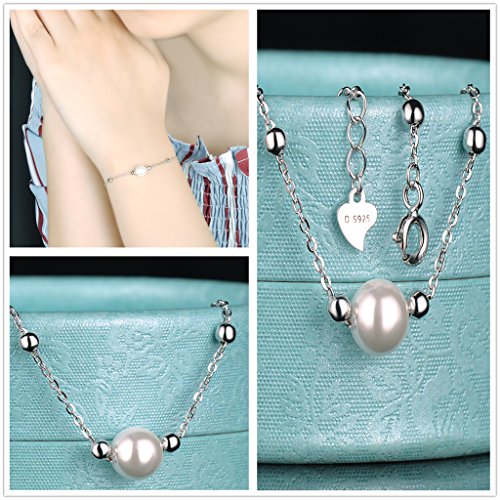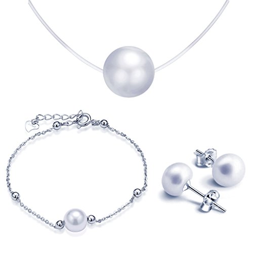 Juegos de Joyas- Yumilok Collares & Pulsera & Pendientes para Mujer de Plata 925 y Perlas, 3 PCS