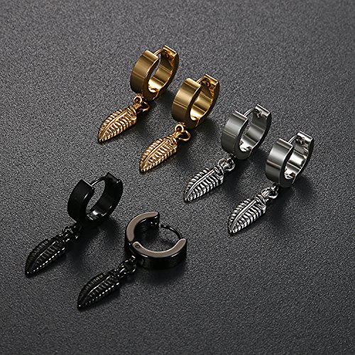 Pendientes Hombre Mujer Acero Pluma Juego de 6 Pcs Aretes Vintage Piering Hipoalergénico Joyería de Moda