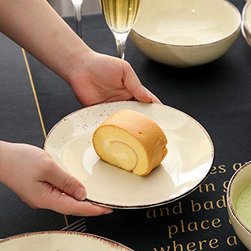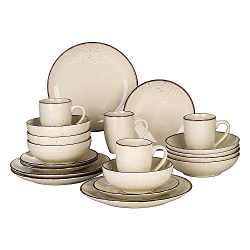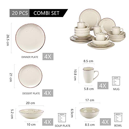 vancasso Serie Navia Nature Vajillas de 20 pcs, Juego de Vajillas, Platos de Cena, Postre, Platod Hondos, Cuencos y Tazas, Esmaltada Gres Vajillas Retro para 4 Personas, Cream