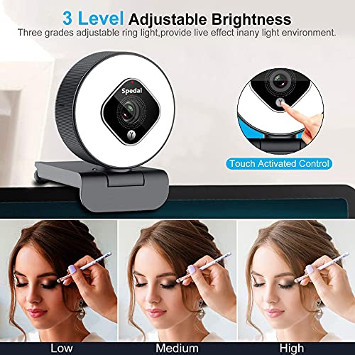 - 【3 Niveles de Camara Web 1080p de Relleno de Luz Ajustable】 La webcam para ordenador tiene 3 niveles de brillo,que pueden lograr un efecto suplementario de luz uniforme bajo condiciones de iluminación severas. Puede configurar el brillo de la luz de relleno según las condiciones de iluminación. Proporcione diferentes requisitos de iluminación para video chat o transmisión de medios de transmisión, optimice automáticamente la imagen y haga que la transmisión de video se vea más profesional.