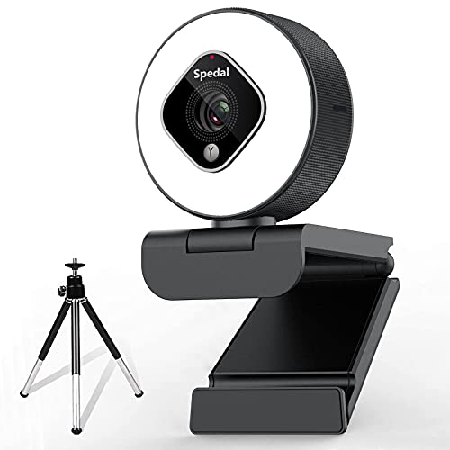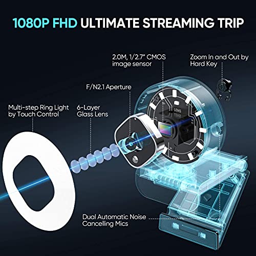 Webcam PC con luz y Tripode, Cámara Web con ZOOM ,Cámara de Streaming para PC portátil , Juego, Webcam Adecuado para Facetime, Skype, Compatible con Windows, Mac【Lncluyendo Software】