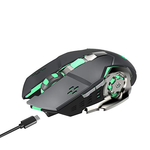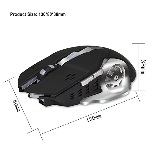 Recargable 2.4Ghz Ratón para Gamer Inalámbrico con Receptor USB,7 Colores Retroiluminado para Macbook, Ordenador Portátil, PC de la Computadora (Batería de litio 600 Mah) (Negro)