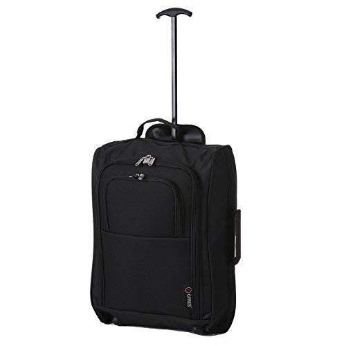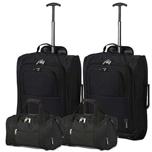 5 Cities - Ryanair Cabin Approved Main & Second Hand Luggage - Carry On Both Equipaje de mano, 54 cm, 42 liters, Negro (Black), conjunto de 2 trolley y 2 bolsas (total: 4)