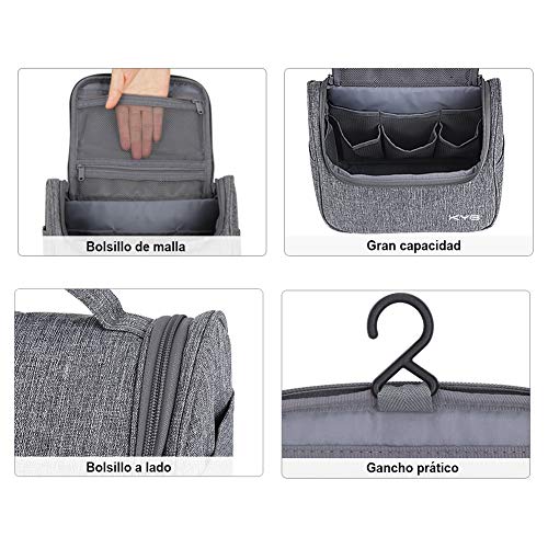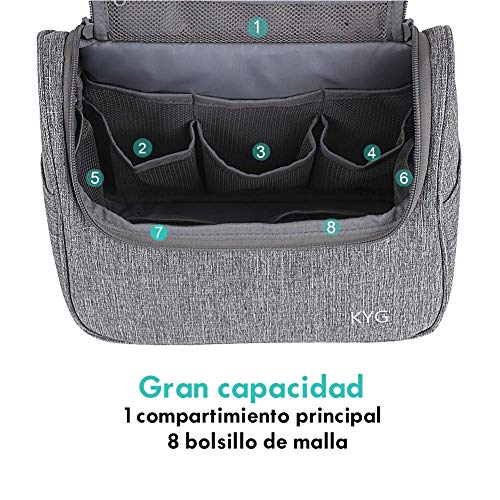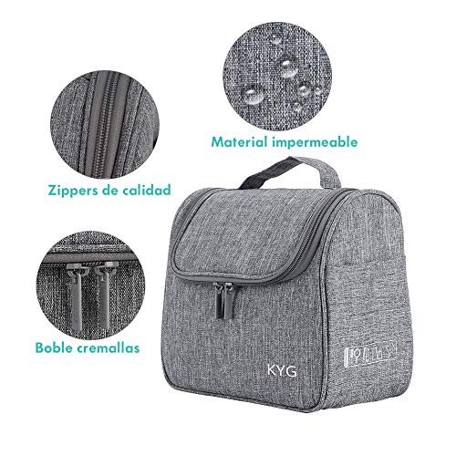 KYG Bolsa de Aseo Colgante Organizador Cosmético de Viaje Ducha Bolsa de Baño para Hombres Mujeres Resistente al Agua Gris