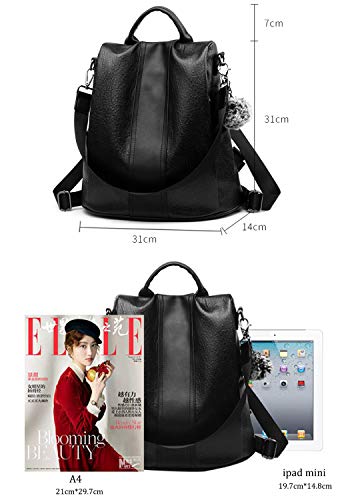 shepretty Mochila Cuero antirrobo Impermeable para Mujer, 12911Negro