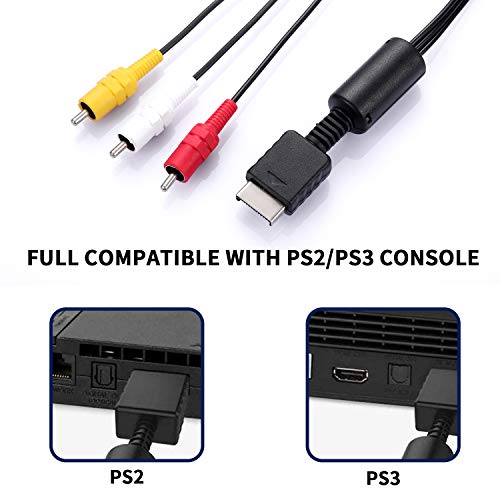 Young4us - Juego de 2 cables RCA para PS3 PS2 PS1 Playstation, accesorios de conexión de componentes de consola de juegos, cable AV (8,2 pies/2,5 m)