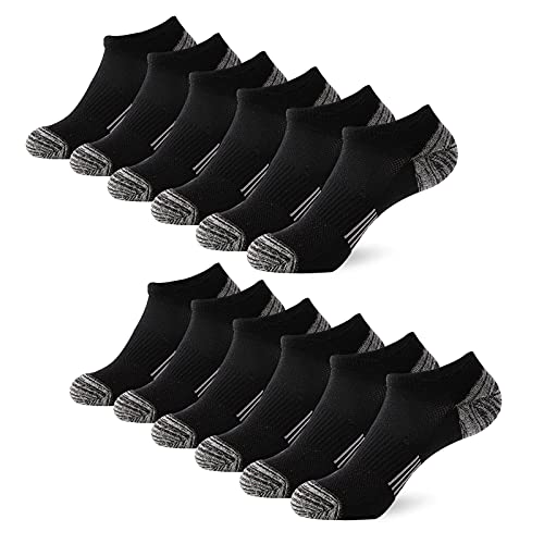 BUDERMMY Calcetines Deporte Hombre Mujer - 6 Pares Calcetines Tobillero Corto Algodón Atlético , Acolchados Antiampolla Transpirable para Correr Ciclismo Senderismo Trail Mtb(Negro *6, 41-46)