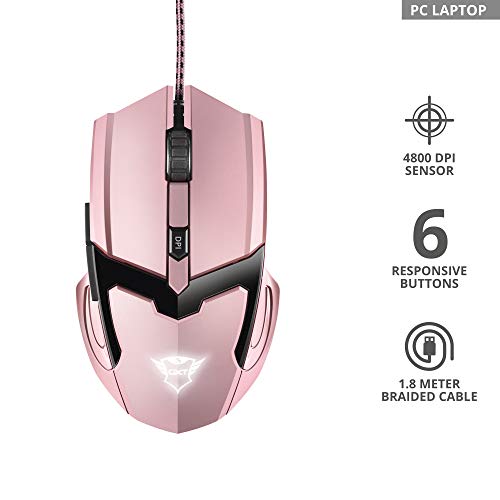 Trust GXT 101P GAV - Ratón Gaming de 4800 PPP con 6 Botones e iluminación, Rosa