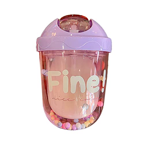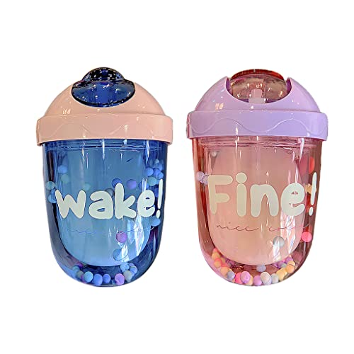 300ML Cute Straw Mugs Juice Cups Water Bottles with Straw and Lid PP PC Silicone Materials for Outdoor Travelling School Drinking Cups with lids for Adults Dishwasher Safe with Straw for Kids Non