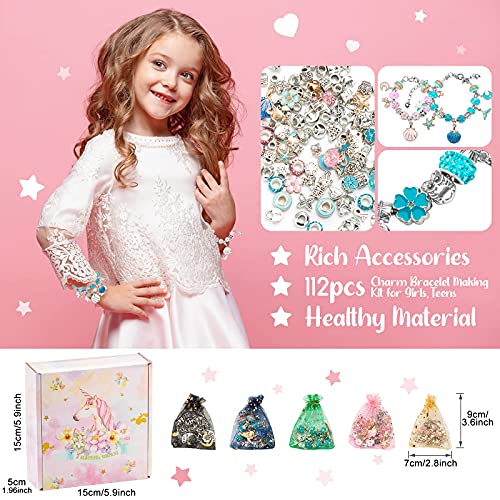 Kit para Hacer Pulseras Niñas,112 PCS Regalo de niña Kit Artesanía DIY Pulsera para Niñas Regalo para Año Nuevo, Cumpleaños, Navidad, a Niñas 5-13 Años
