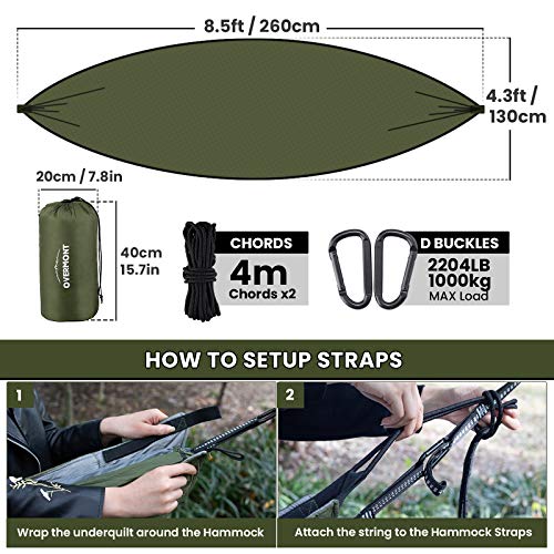 OVERMONT Hamaca bajo edredón Relleno de Aislamiento bajo edredón para hamacas Mochilero Camping para Exteriores Jungle Adventure Senderismo Viajes 270 x 140 cm