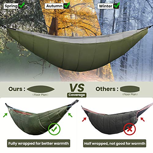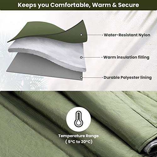 - 【MANTENERSE CALIENTE Y A PRUEBA DE VIENTO】 La colcha inferior tiene un relleno de poliéster de 45 a 160 gramos por metro cuadrado, la colcha inferior es más suave, a prueba de viento y una gran solución cálida para hamacas en otoño e invierno al aire libre, no te preocupes por enfriar tu trasero.