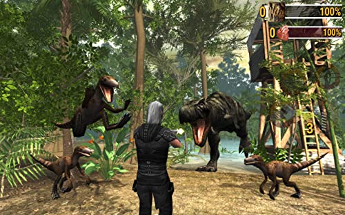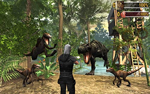 - Usa una gran cantidad de armas para cazar durante el día y crea un fuego de campamento por la noche para mantener a la vista esos dinosaurios peligrosos.