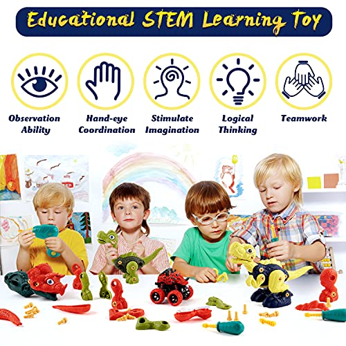 - 【Fácil de Montar】este juguetes dinosaurios para niños incluye 1 taladro de motor de baja velocidad con rotación bidireccional para apretar los tornillos sueltos y encontrar un obstáculo que se detendrá automáticamente. No se preocupe por los niños heridos. 3 destornilladores de mano suficientes para trabajar en equipo infantil. Seguro para su uso y fácil para que los niños comprendan cada paso con instrucciones.
