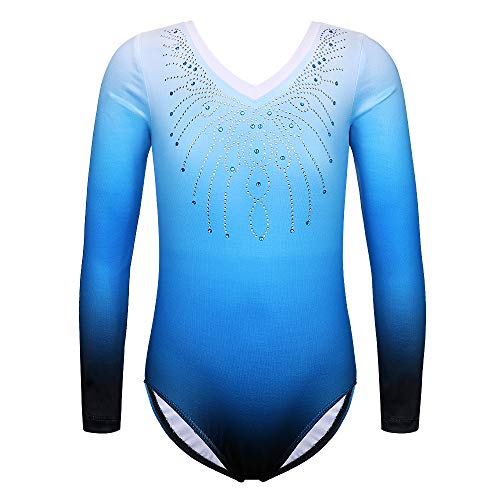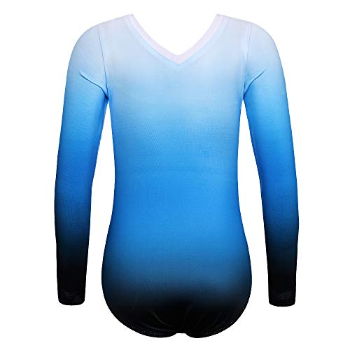 ZNYUNE Niña Maillot de Gimnasia Color Degradado Manga Larga 152 Zafiro 14A