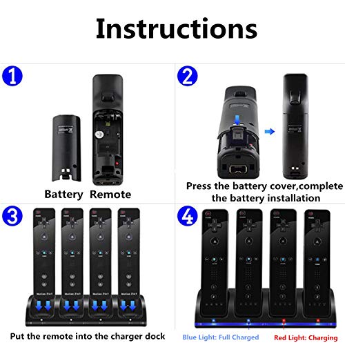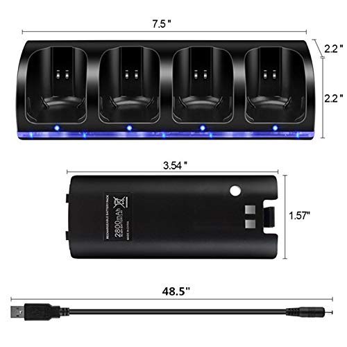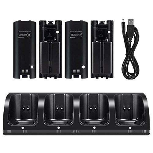 - El paquete incluye: estación de carga del cargador de Wii, 4 baterías recargables de 2800 mAh, cable 1xUSB