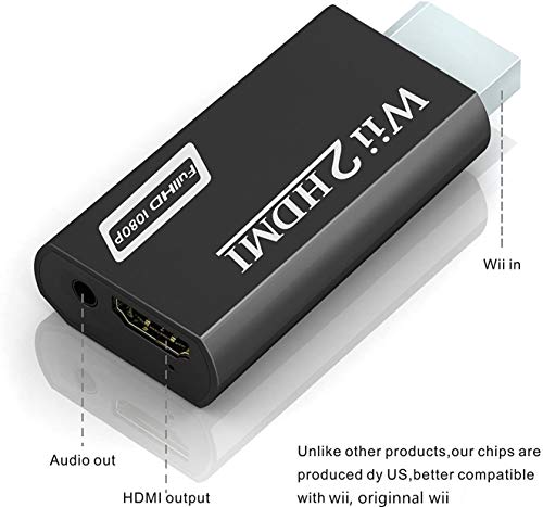 Wii a HDMI Adaptador, gana Wii a HDMI convertidor Conector con Salida de vídeo de 1080p/720p y 3,5 mm Audio - Soporta Todos los Modos de visualización de Wii (Wii a HDMI Negro)