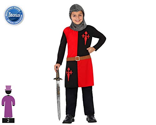 Atosa Disfraz Caballero Cruzadas Niño Infantil Negro Rojo 10 a 12 años