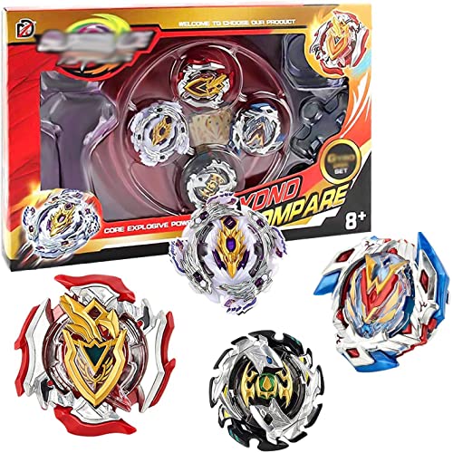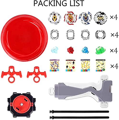 Funmo Burst Peonzas, 4 Pcs Conjuntos de Metal de Gyro 4D Peonzas Gyro Lucha Maestro Cadena Launcher con Estadio Infinity Nado Básico Duelos Conjuntos Regalo para Niños