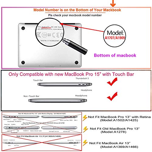 - Esta funda solo es compatible con MacBook Pro 15 con barra táctil y pantalla Retina, sin Cdrom, lanzamiento de 2016-2018. Modelo: A1707/A1990